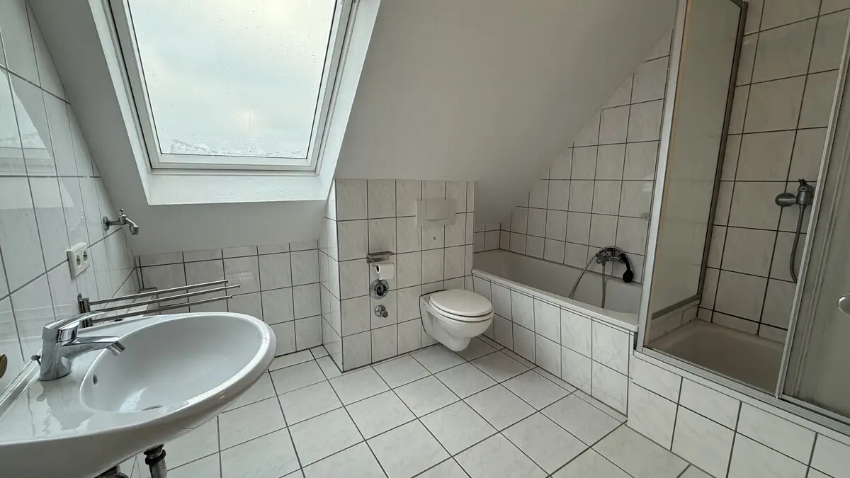 Auf der ersten Ebene der Maisonette-Wohnung befinden sich das großzügige Wohn- und Esszimmer mit Balkonzugang, die Küche und das Badezimmer. Hier besteht die genannte Option, ein weiteres Zimmer zu realisieren. Im oberen Bereich finden Sie ein Schlafzimmer sowie einen offenen Bereich, welcher sich, beispielsweise, für eine Büronutzung eignet. Der Parkettboden in der unteren Etage wurde im Dezember 2025 abgeschliffen und neu aufbereitet, sodass dieser wieder im alten Glanz erstrahlt und einem direkten Einzug nichts im Wege steht.