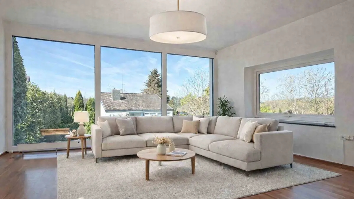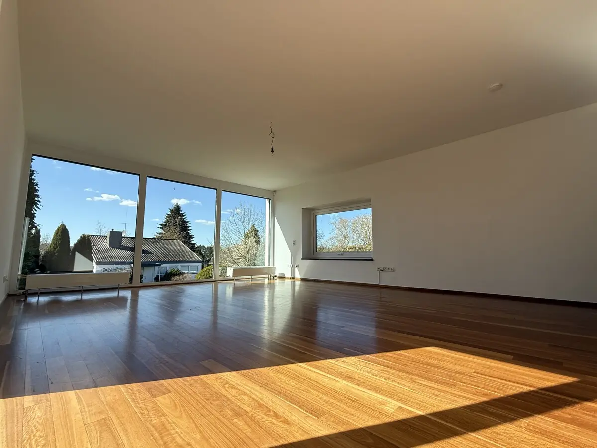 Ein besonderes Highlight ist das ca. 40 m² große Wohnzimmer mit den drei, nach Westen ausgerichteten, Panoramafenstern.