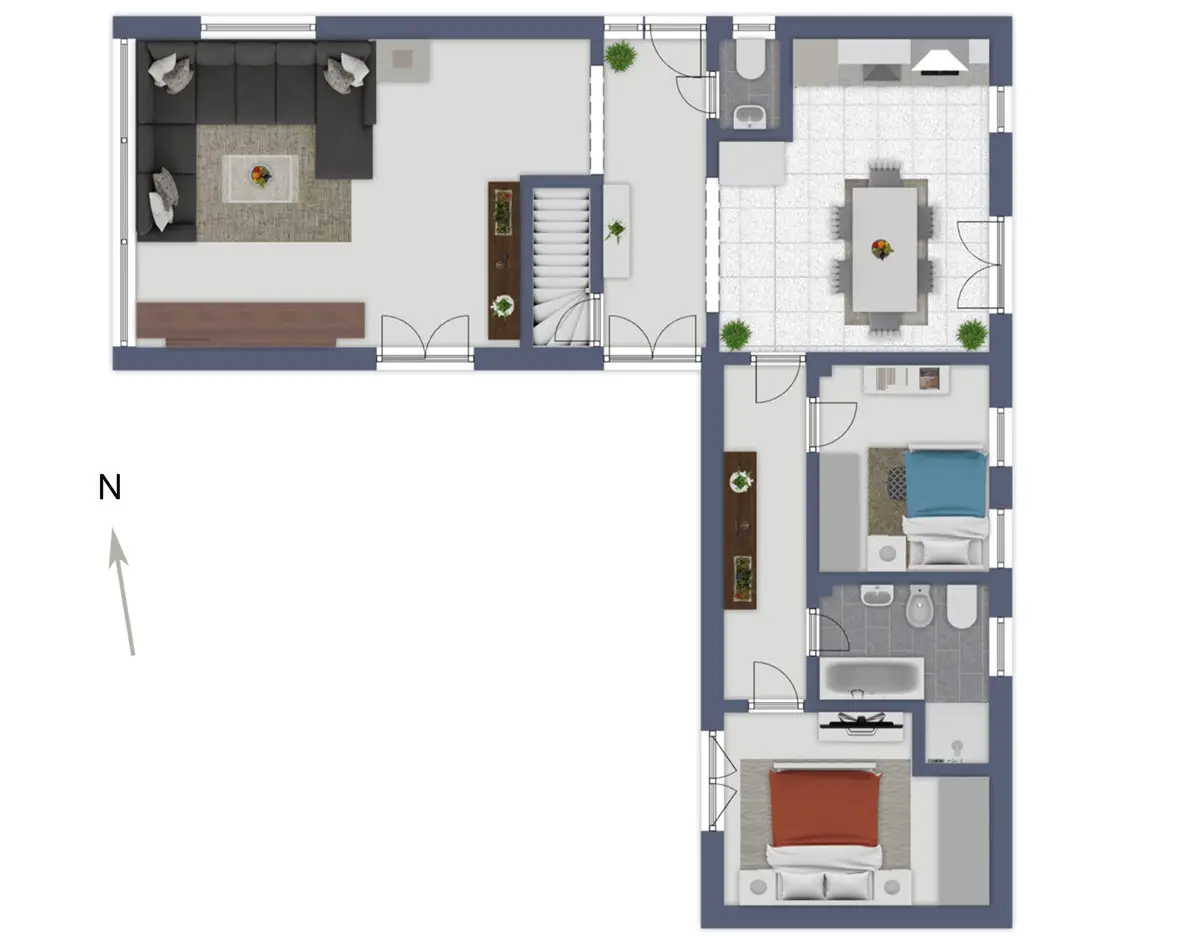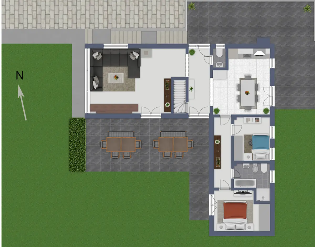 Im Untergeschoss/Souterrainbereich wurden, im Jahr 2016, zwei weitere Zimmer und ein Duschbad errichtet. Die reine Wohnfläche beträgt etwa 150 m². Großzügige Terrassen mit unterschiedlichen Himmelsausrichtungen bieten Ihnen nochmals ca. 130 m² Wohlfühlfläche.